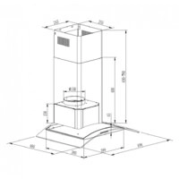 конструкция купольная, монтаж настенный, ширина 50 см, управление электронное/кнопочное, производительность мотора 900 м³/ч, цвет черный